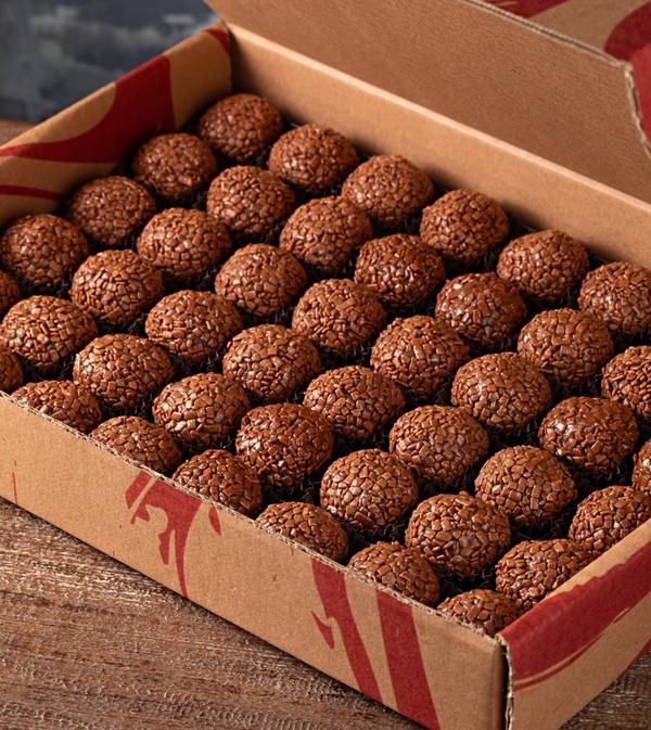 Docinho de leite condensado com chocolate coberto com chocolate belga.